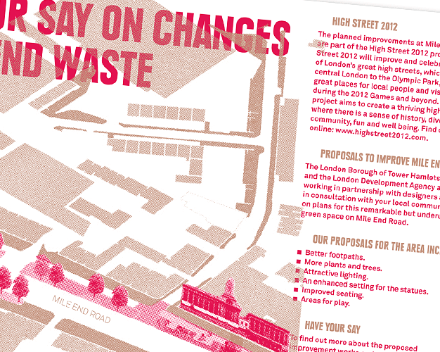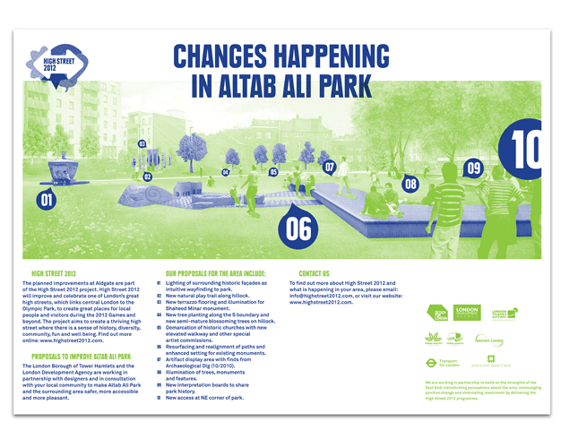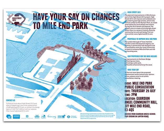 Whilst working at Objectif, I assisted in designing a series of posters and also shopfront typography as part of the Highstreet 2012 regeneration work, from Aldgate to Stratford.